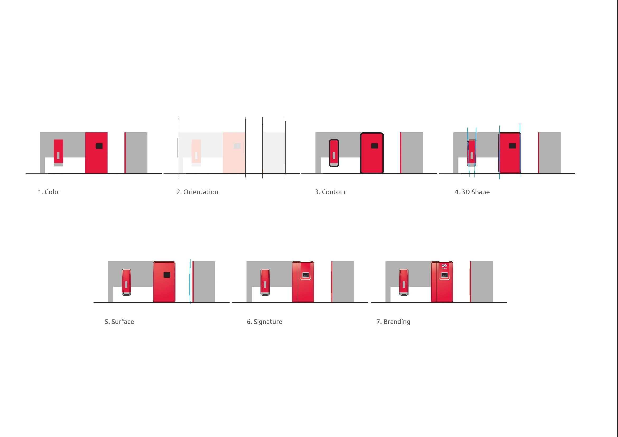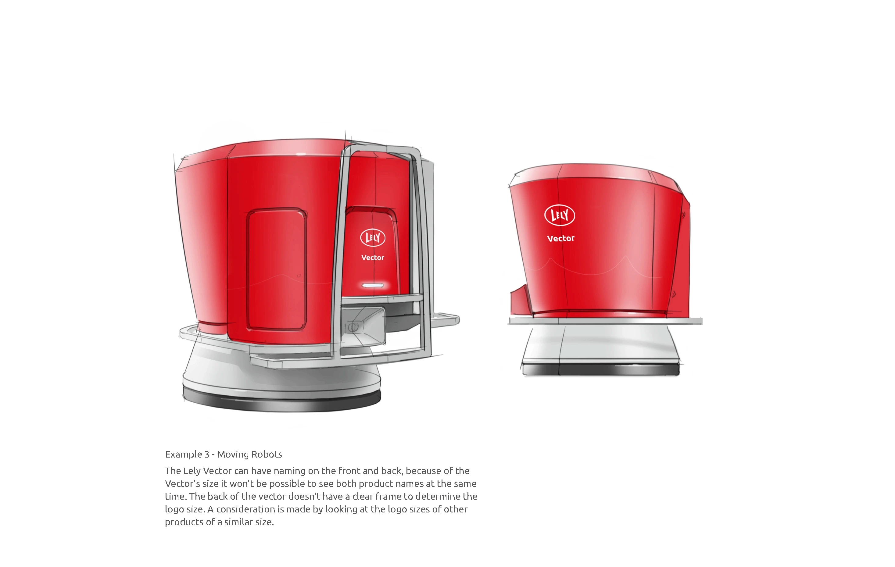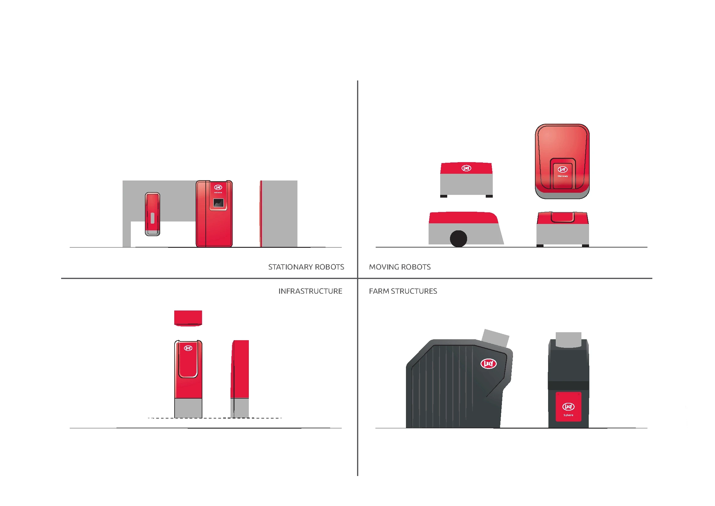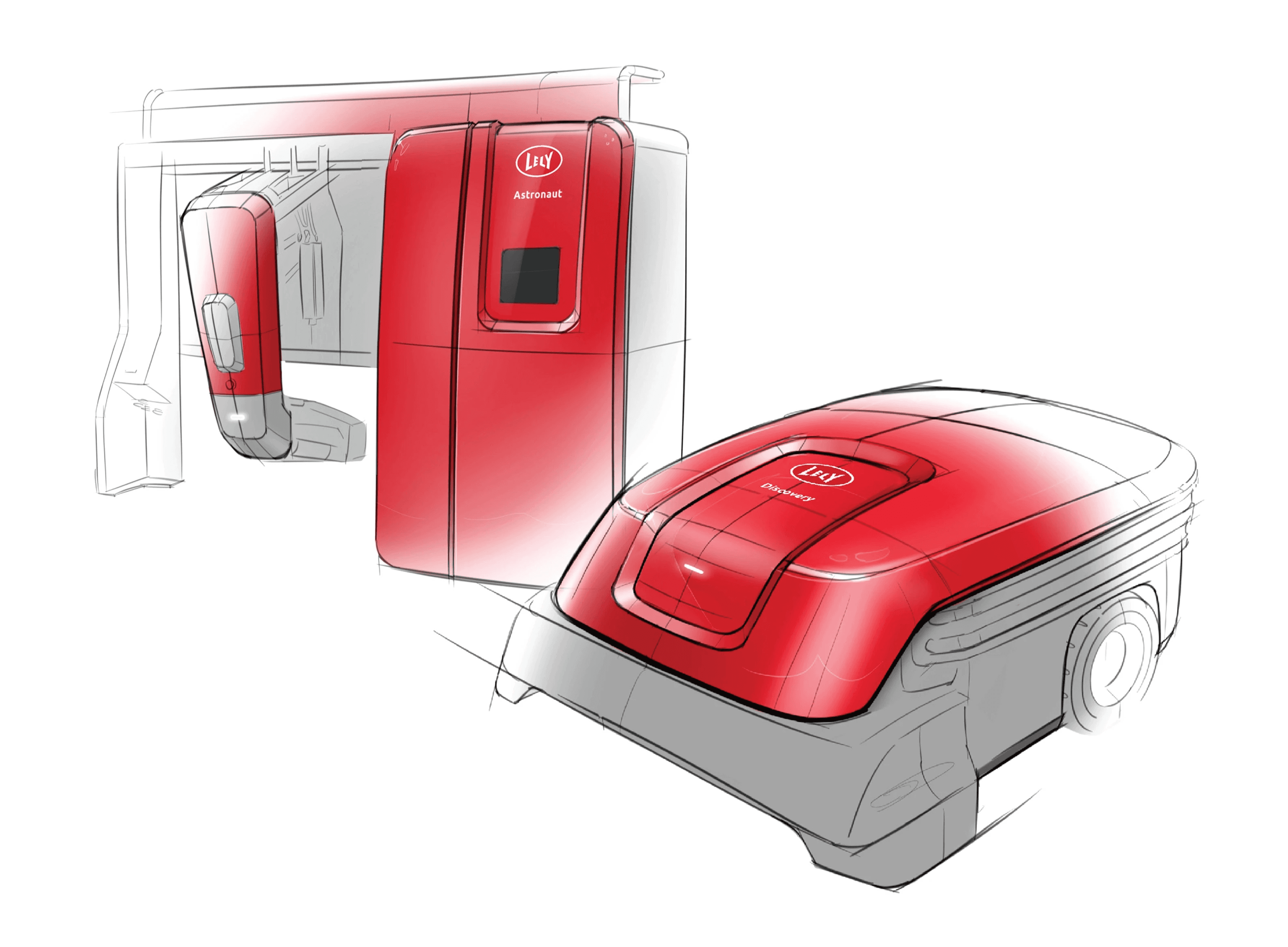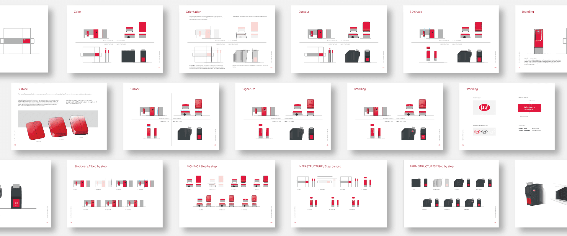 Specific design guidelines for a Lely product depend on the category it's in: is it a stationary robot, a moving robot, a farm structure or is it infrastructure/support? For each category, we defined 7 building blocks: a step-by-step approach to get to the optimal design. Making it as easy as possible for product developers to create a consistent appearance.